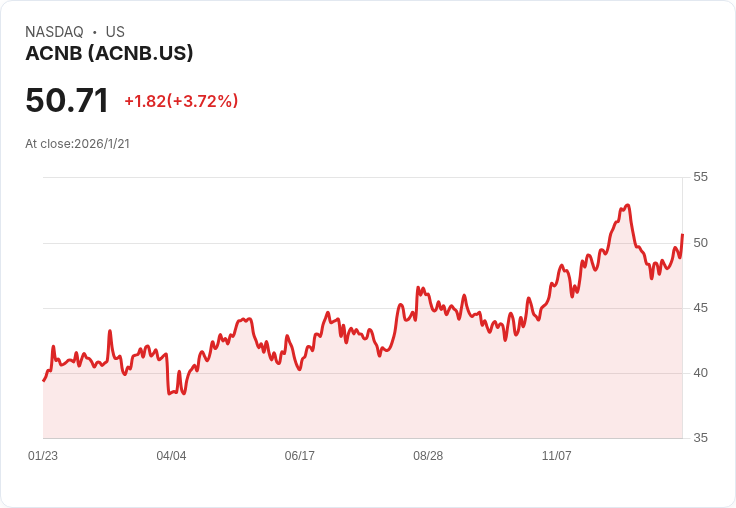 ACNB於2025年第四季報告GAAP每股盈餘為$1.04,營收達$37.18M,顯示出穩健的財務表現。