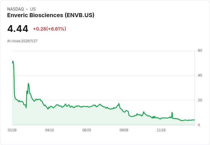 此次募資預計將帶來約150萬美元的毛收益,這些資金將用於產品開發、營運資金及一般企業用途。然而,該訊息發布後,ENVB的股價在盤前交易中下滑超過12.5%,反映市場對此訊息的負面反應。