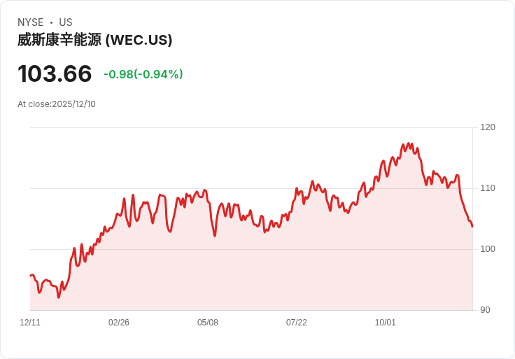 新聞:隨著市場趨勢持續集中,Mairs & Power的投資信函強調了WEC能源集團(NYSE:WEC)的投資價值。該公司專注於提供受管制的天然氣和電力服務,其穩健的業務模式吸引了許多投資者。儘管WEC近期一個月回報率為-7.23%,但過去52周卻上升了8.14%。截至2025年12月10日,WEC股價收於每股103.66美元,市值達340.4億美元。