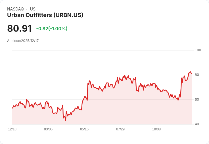 Telsey Advisory將Urban Outfitters的評級從「市場表現」上調至「優於大盤」,並提高目標價至98美元,顯示品牌改善帶來穩定增長。