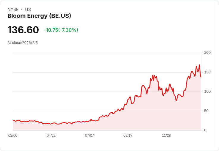 Bloom Energy 預計2026年將實現31億至33億美元的營收,並報告第四季度創下新高的財務數據及強勁的產品訂單。