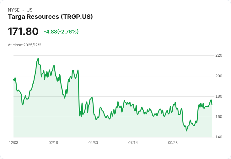 RBC Capital 在11月18日宣佈,將 Targa Resources Corp. (NYSE: TRGP) 的目標股價提高至213美元,這一決定是在公司發佈2025年第三季度業績後做出的。該行指出,Targa在本季度表現強勁,預計將達到2025年調整後EBITDA指導範圍的上限,顯示出增長潛力。
