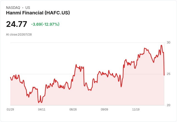 漢米金融(Hanmi Financial, HAFC)近日引起市場關注,因其決定將季度股息提升至每股0.28美元,較先前的0.27美元增加了3.7%。這一變動使得該公司的年度收益率達到4.52%,顯示出對股東的承諾與信心。此次股息將於2月25日支付,記錄日期為2月9日,而除息日同樣設定在2月9日。
