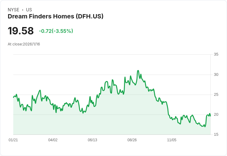 夢想建設公司(Dream Finders Homes, DFH)最近的股價波動引發了投資者關注。該公司目前股價為19.58美元,較分析師目標價格22.00美元有明顯差距。根據最新資料,DFH的30天回報率為9.39%,但90天內則下降了13.36%。這些數字反映出市場對其未來增長前景的不同看法。