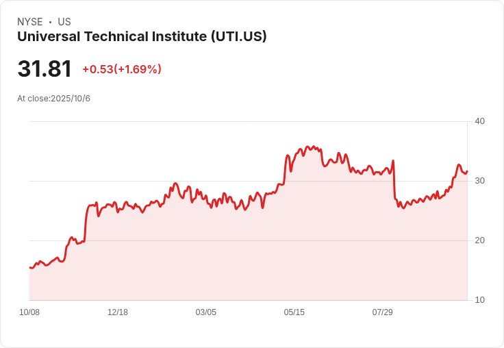 Universal Technical Institute (UTI) 股價今日下跌6.6%,因美國經濟報告不佳及政府關閉影響市場情緒。