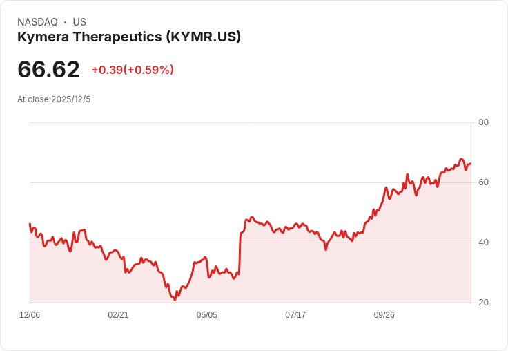 Kymera Therapeutics 宣佈將於12月8日發布其治療濕疹候選藥物 KT-621 的第一階段臨床資料,股價在盤後交易中上漲約9%。