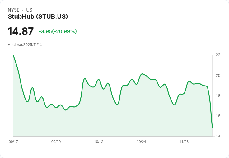 StubHub在紐約證券交易所成功籌集了8億美元,歷經兩次延遲後終於上市。最近一次的延期發生在特朗普總統宣佈廣泛關稅政策之後。該公司在八月重新啟動了公開募股程式,並提交了更新的招股說明書。截至週四,StubHub的股價收於18.82美元,已從23.50美元的IPO價格下跌約20%。