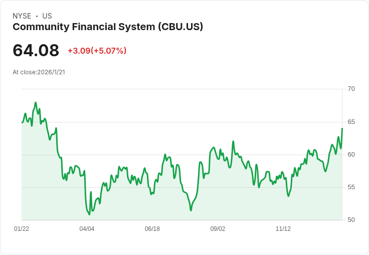 社群金融系統(CBU)宣佈將發放每股$0.47的季度股息,收益率達2.93%,顯示公司持續穩健的財務表現。