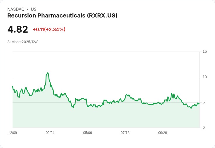 Recursion Pharmaceuticals的REC-4881在臨床試驗中表現優異,股價上漲超過2%。該藥物有望治療家族性腺瘤性息肉病,顯示出良好的未來潛力。