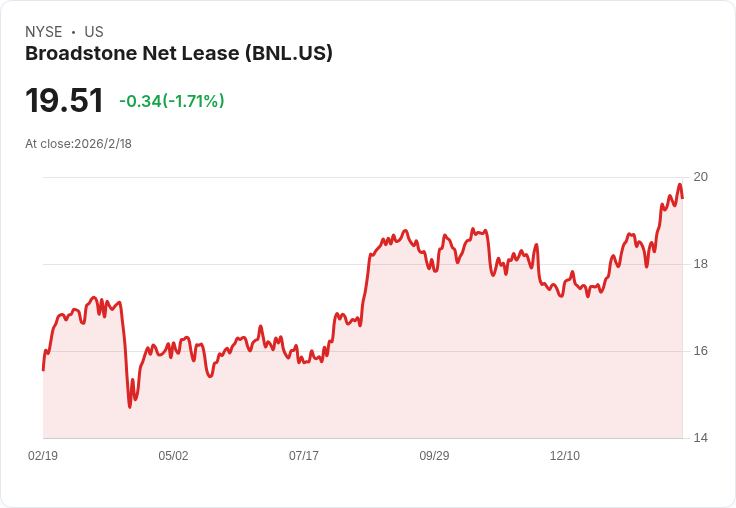 Broadstone Net Lease (BNL) 今日宣佈,其季度股息將提高至每股 $0.2925,這是自七個季度以來首次調整,此次增幅為 0.9%。新股息於4月15日支付,記錄日期為3月31日,而除息日也定在同一天。根據最新資料,該公司的前瞻收益率已達到6.0%。