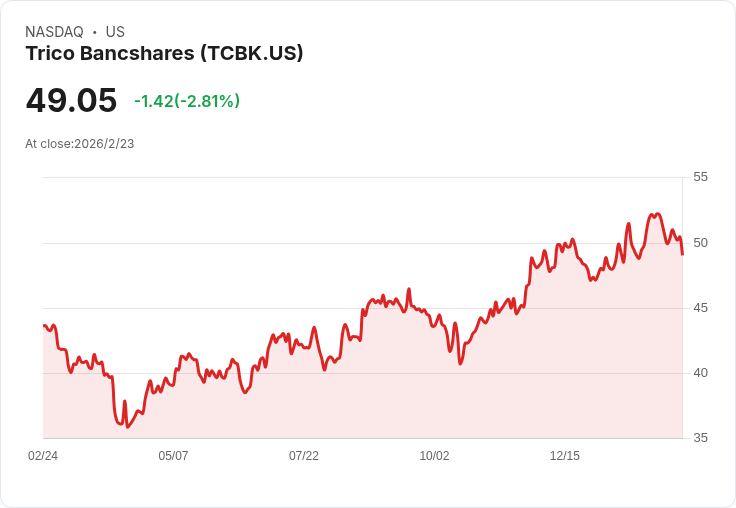 根據最新的財報資料,TriCo Bancshares 公佈的 GAAP 每股盈餘(EPS)為 $1.03,營收達到 $109.39 百萬美元,顯示出企業在市場中的競爭力及成長潛力。儘管市場上存在一些對未來經濟環境的不確定性,但該公司的穩定股利政策仍然吸引著許多尋求固定收入的投資者。展望未來,TriCo Bancshares 將繼續專注於增強其業務基礎,以支撐更高的股東回報。