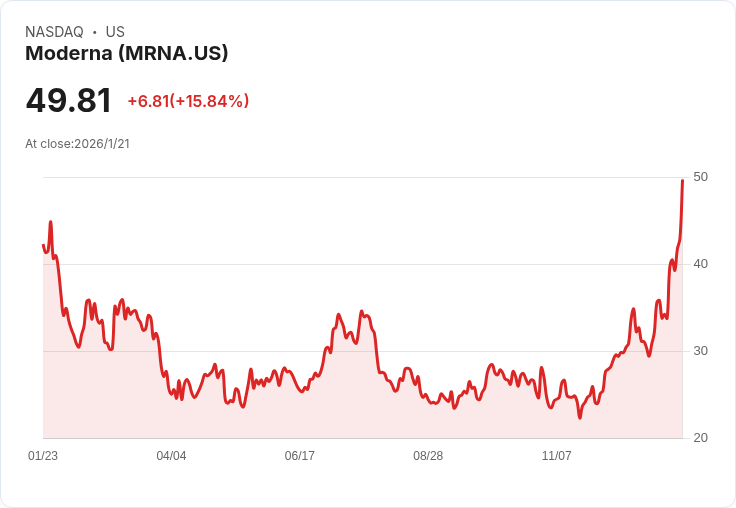 隨著Moderna(MRNA)股價在本週強勁上漲,市場再次聚焦於與這家美國製藥和生物科技公司密切相關的交易所交易基金(ETF)。僅在週四一天,Moderna的股價就飆升了9.7%,過去五個交易日更是累計增長28.9%,標誌著近期最強短期反彈之一。根據資料顯示,目前168檔ETF中持有Moderna,共擁有約7230萬股,這一激增的股價變動使得那些重倉此股的基金受到明顯影響,尤其是在健康照護和生技領域。