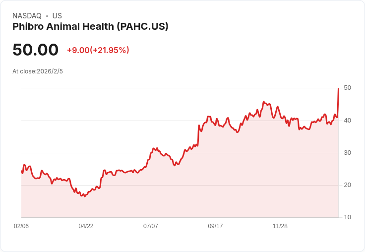 Phibro Animal Health第二季淨銷售達3.739億美元,同比增長21%,並將2026財年指引上調至15億美元。