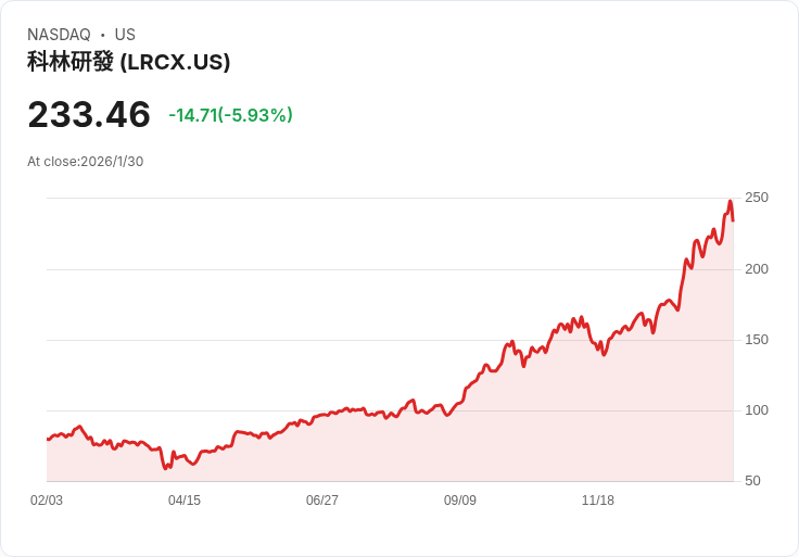 Lam Research Corporation(NASDAQ:LRCX)在2025年12月結束的季度中表現亮眼,收入達到53.4億美元,超過華爾街預測的52.6億美元。經調整每股盈餘為1.27美元,比預期高出10美分,訊息發布後,LRCX股價在延後交易中上漲了3.2%。