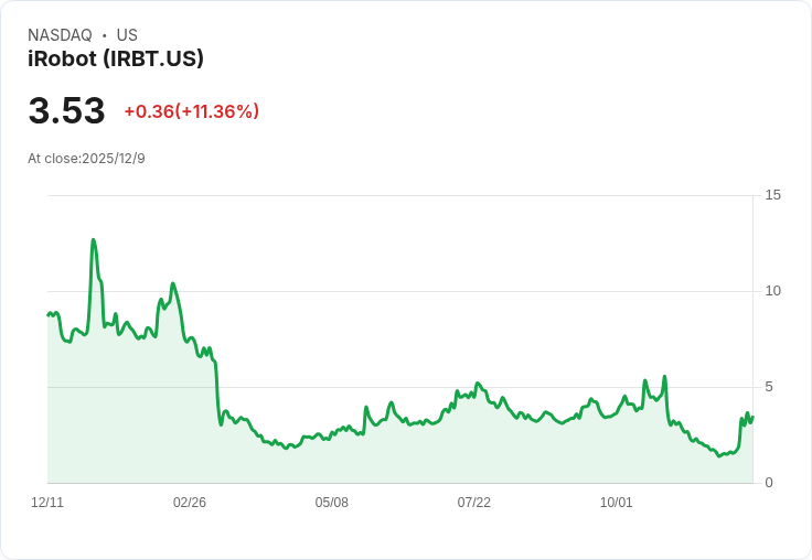 在週三的交易中,iRobot (IRBT) 的股價大幅上揚,引起投資者的注意。隨著成交量超過8300萬股,這一數字遠超其日均1100萬股的交易量,顯示出市場的極大波動性。當日下午12點25分,iRobot的股價已上漲43.1%,最高曾達到每股5.11美元。根據最新資料,該公司的短期借貸比例高達39.1%,是消費品行業中最為突出的之一。