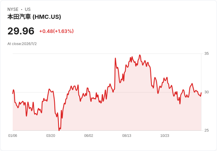 Honda Motor Co.在2025年12月的美國銷售量達118,659輛,較去年同期下降12.5%。輕型卡車銷售大幅減少,引發業界擔憂。