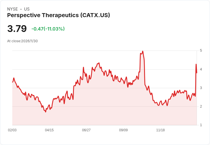前景療法公司(Perspective Therapeutics, NYSE: CATX)近日宣佈了一項規模達1.75億美元的公開募股。該公司將以每股3.79美元的價格發行39.6百萬股普通股,並附加6.6百萬個預付權證,這些權證的定價為每個3.789美元。此次募資預計於2026年2月3日左右完成,所有股份及權證均由公司出售,無其他賣方參與。