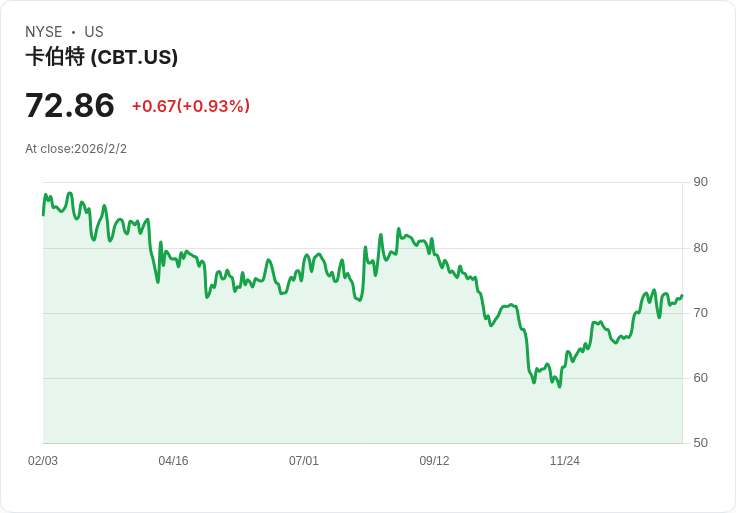 美國化學製造商 Cabot(NYSE: CBT)近日宣佈將於3月13日支付每股 $0.45 的季度股息,此次股息金額與之前相同,顯示出公司穩定的財務狀況。根據公告,該股息將支付給截至2月27日的股東,而除權日亦為同一天,這意味著投資者需在此日期之前購買股票以獲得此次分紅。