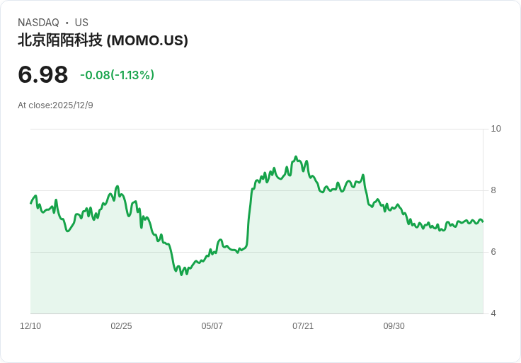 Hello Group於2025年第三季度公佈的財報令人矚目,非GAAP每股收益達到0.33美元,超出分析師預估的0.04美元。此外,公司總收入為3.723億美元,同比輕微下降0.9%,但仍高於預期6,780萬美元。特別值得注意的是,海外淨收入同比增長69%至人民幣534.8百萬元(約合7,510萬美元),顯示其國際市場表現強勁。
