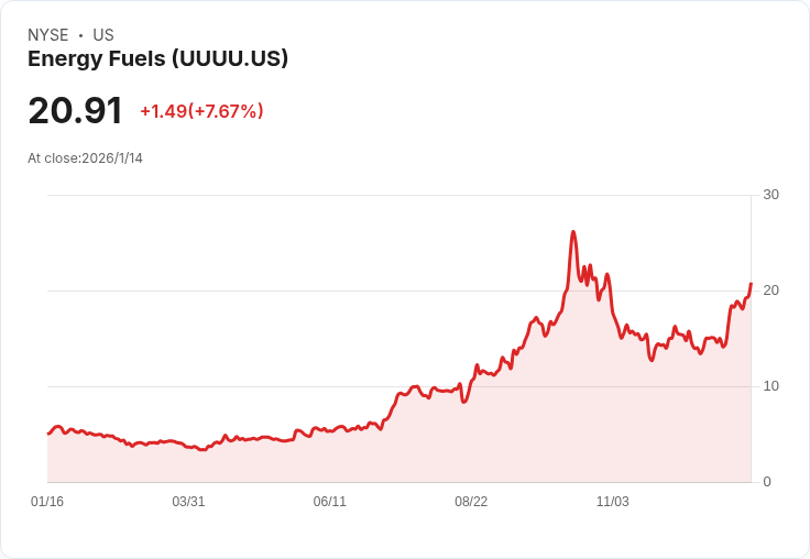 能源燃料公司(UUUU)近期股價上漲3.2%,因其公佈的可行性研究報告顯示,白梅薩工廠的二期稀土元素處理擴建計畫具有「卓越的經濟學、具競爭力的成本結構,以及能夠滿足美國大量稀土需求的能力」。該研究預測,二期電路的初始資本成本約為4.1億美元,將使公司的生產能力從目前的每年1000公噸NdPr氧化物提高至超過6000公噸,同時還能提供每年66公噸的鉿和240公噸的釹。