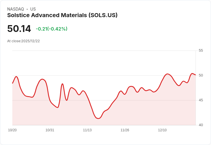 新聞:隨著Solstice Advanced Materials(股票代號:SOLS)股價在過去一個月內上漲12.8%,許多投資者開始質疑這是否是明智的購買時機。儘管最近股市表現不俗,年初至今僅增長3.6%的背景下,Solstice的股價已悄然超越了這一數字。