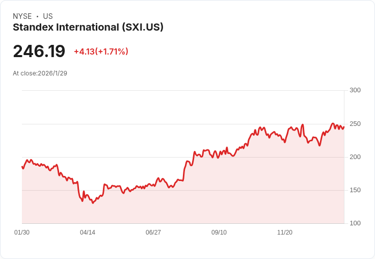 該公司的股息收益率為0.55%,並且已經連續三個季度維持此一水平,顯示出其財務狀況良好。此外,Standex近期也在CJS Securities第26屆「新年新想法」投資會議上進行了展示,強調其未來增長潛力和業務策略。