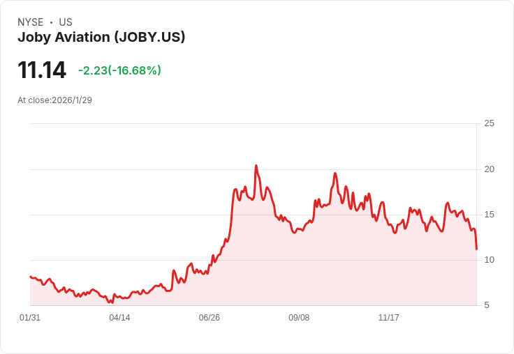 隨著2026年一月結束,工業類股表現不佳,Joby Aviation成為最大的受害者,單月下降17.73%。