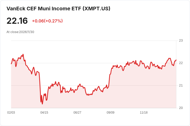 VanEck Vectors CEF市政收入ETF(程式碼:XMPT)近日公佈了其最新的每月分配金額,定於2024年2月5日向股東支付每股$0.1057。該基金的30天SEC收益率目前為5.83%,顯示出其在市場中的穩健表現。