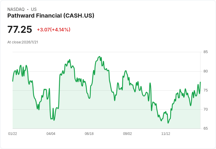 隨著Pathward Financial(CASH)即將在1月22日市場收盤後發布第一季財報,投資者的目光再度聚焦於這家金融機構。根據分析師預測,該公司每股盈餘(EPS)預計為1.38美元,同比增長7%;而營收則預估達到1.858億美元,同樣呈現7.1%的年增幅。