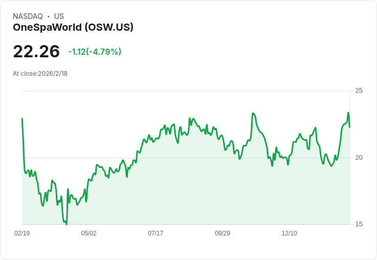 OneSpaWorld Holdings Limited(OSW)近日宣佈將於3月25日支付每股0.05美元的季度股息,此次股息與前一季度相同,顯示出公司穩健的財務狀況。根據公告,記錄在案的股東需在3月11日前完成持股,以便獲得此次分紅,而除息日也設定為同一天。這是公司連續第二個季度維持相同股息水準,展現其對股東回報的重視。