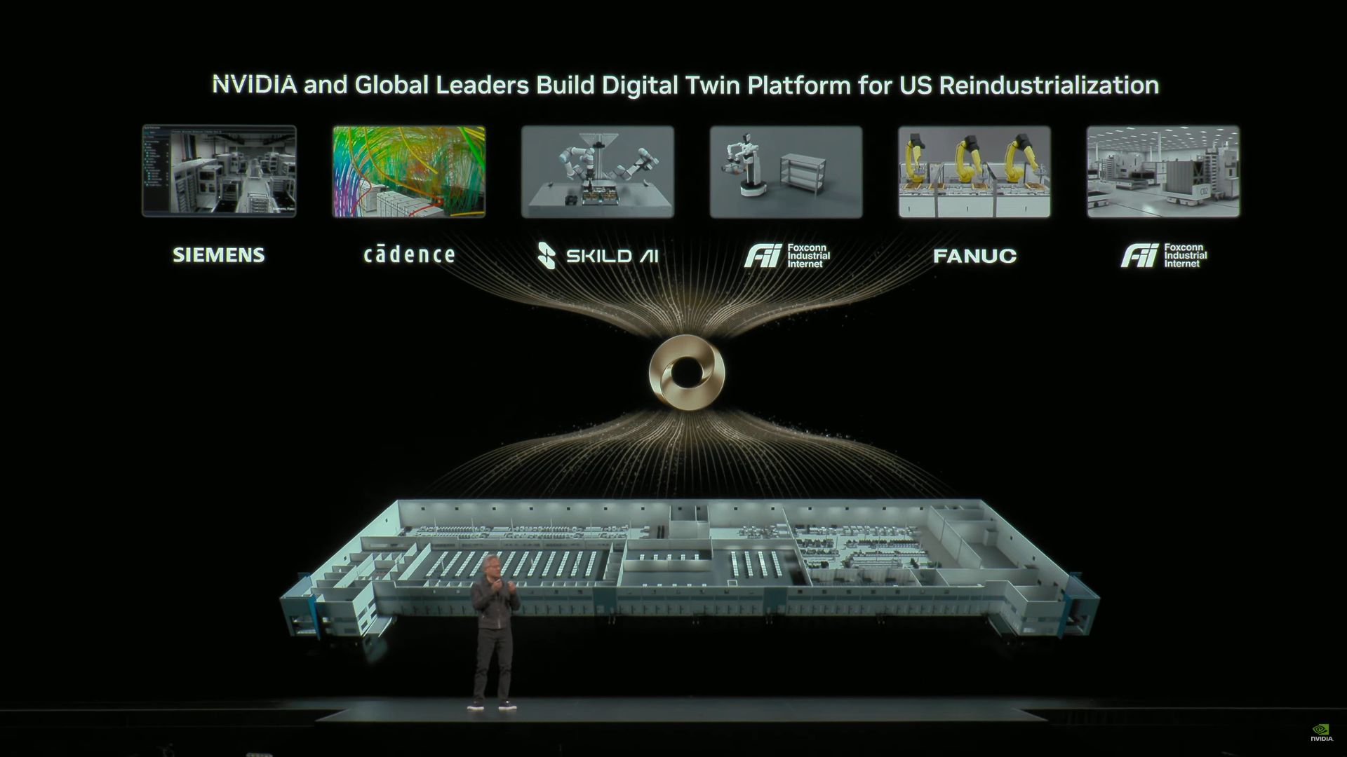 如果說 Rubin 是心臟、NVQLink 是橋樑,那 Omniverse 就是「靈魂」。黃仁勳宣布推出 Omniverse DSX Blueprint,讓企業能在虛擬環境中完整模擬 AI 工廠的建設與運行。 從電力配置、冷卻設計到運算負載分配,所有細節都能先在數位孿生世界中測試。
