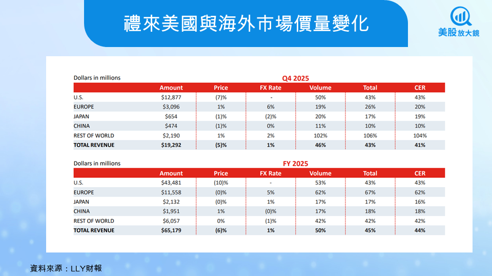 從 25Q4 的結構來看,禮來的成長邏輯已出現關鍵轉折。過去兩年,市場對禮來的估值主要建立在美國市場的快速滲透;而本季數據顯示,成長引擎正逐步從單一市場,轉向更具延展性的全球擴散。