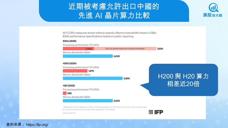 IFP 指出,若將美國與中國在 2026 年的 AI 算力總量比較,完全禁止出口將使美國維持二十倍以上的領先;若開放 H200,領先幅度縮小至約兩到七倍,但仍具明顯優勢。這項數據顯示,美方判斷 H200 可能在不傷及整體戰略優勢下,成為可交換的籌碼。