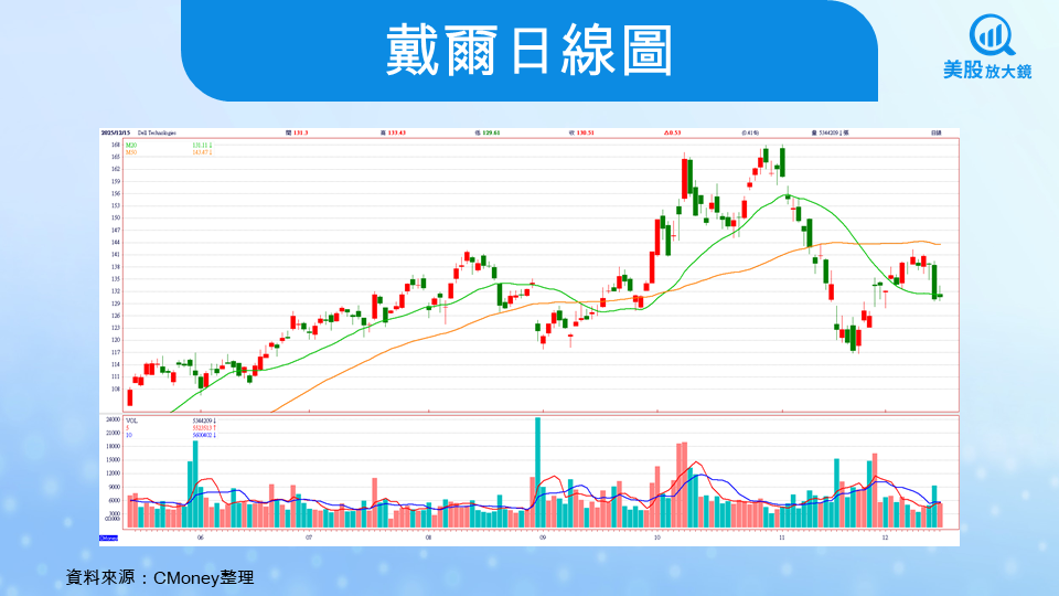 從市場反應來看,戴爾近期股價已率先反映這項結構性變化。過去六個月,戴爾股價累計上漲約 15%,股價區間一度逼近 160 美元後回檔整理,目前仍維持在 130 美元上下,顯示市場並未因短線波動否定其基本面方向,而是在重新評估中長期獲利結構。