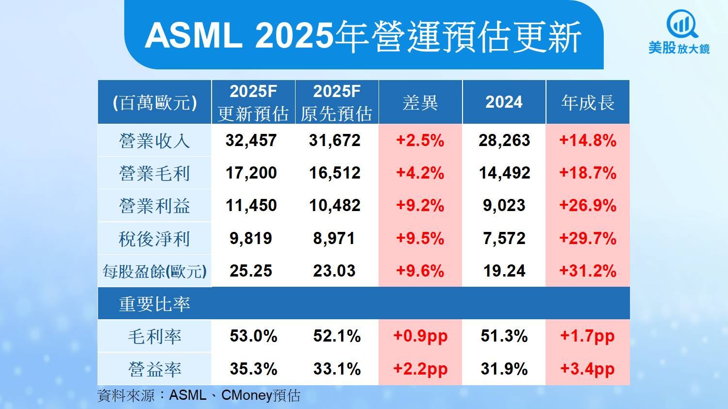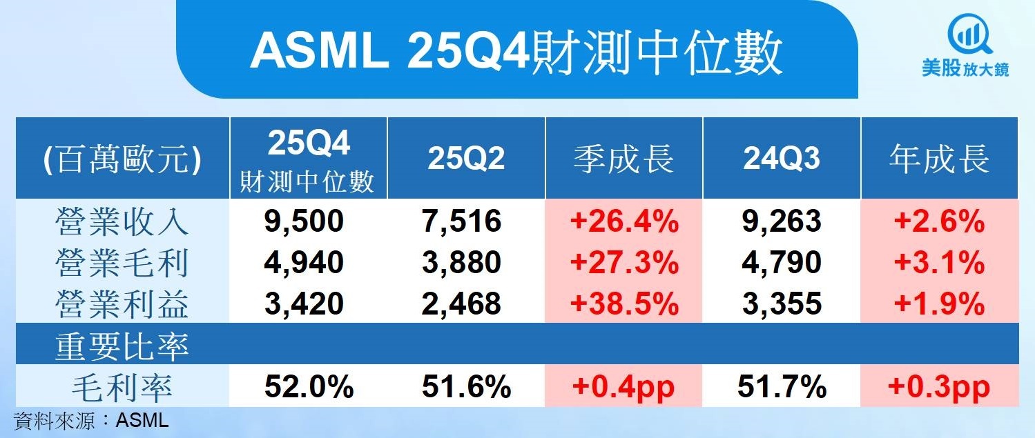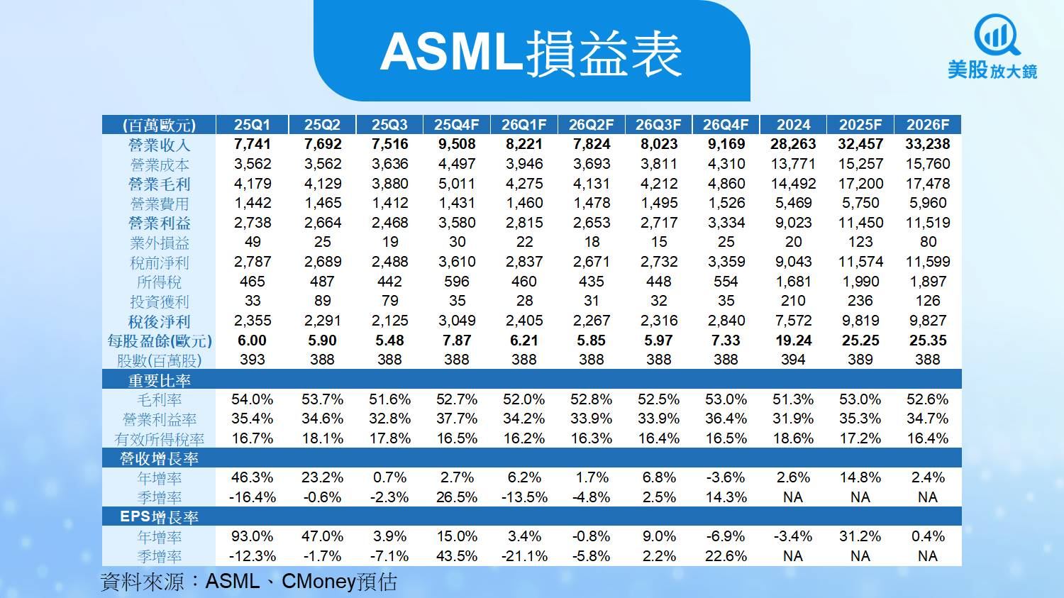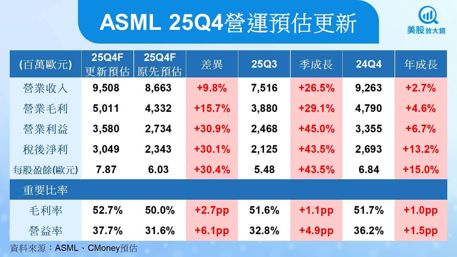 毛利與 EPS 上修幅度大,ASML 25Q4 獲利表現可望亮眼