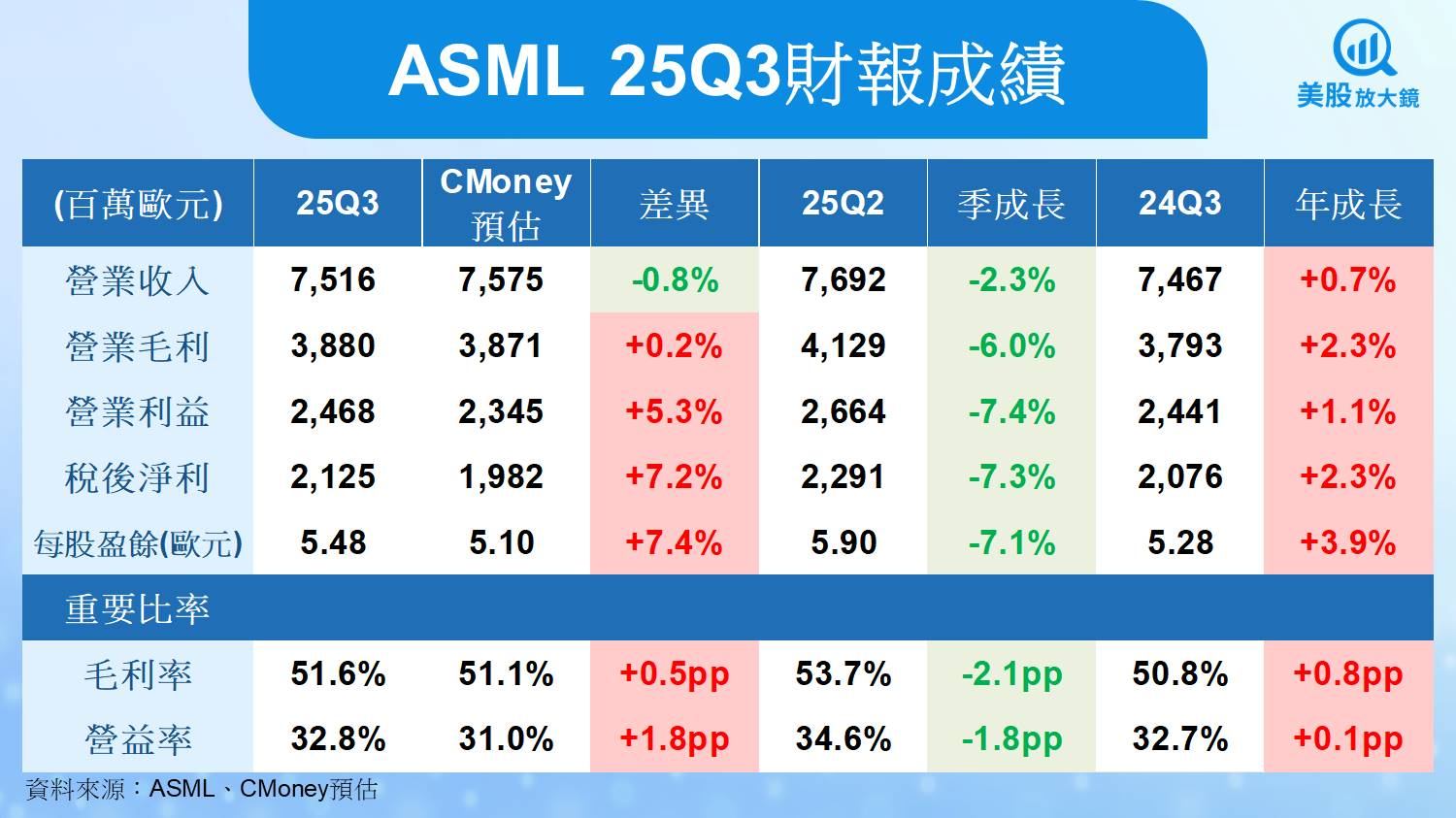 ASML 25Q3 EPS 優於預期,費用控管與產品組合見韌性