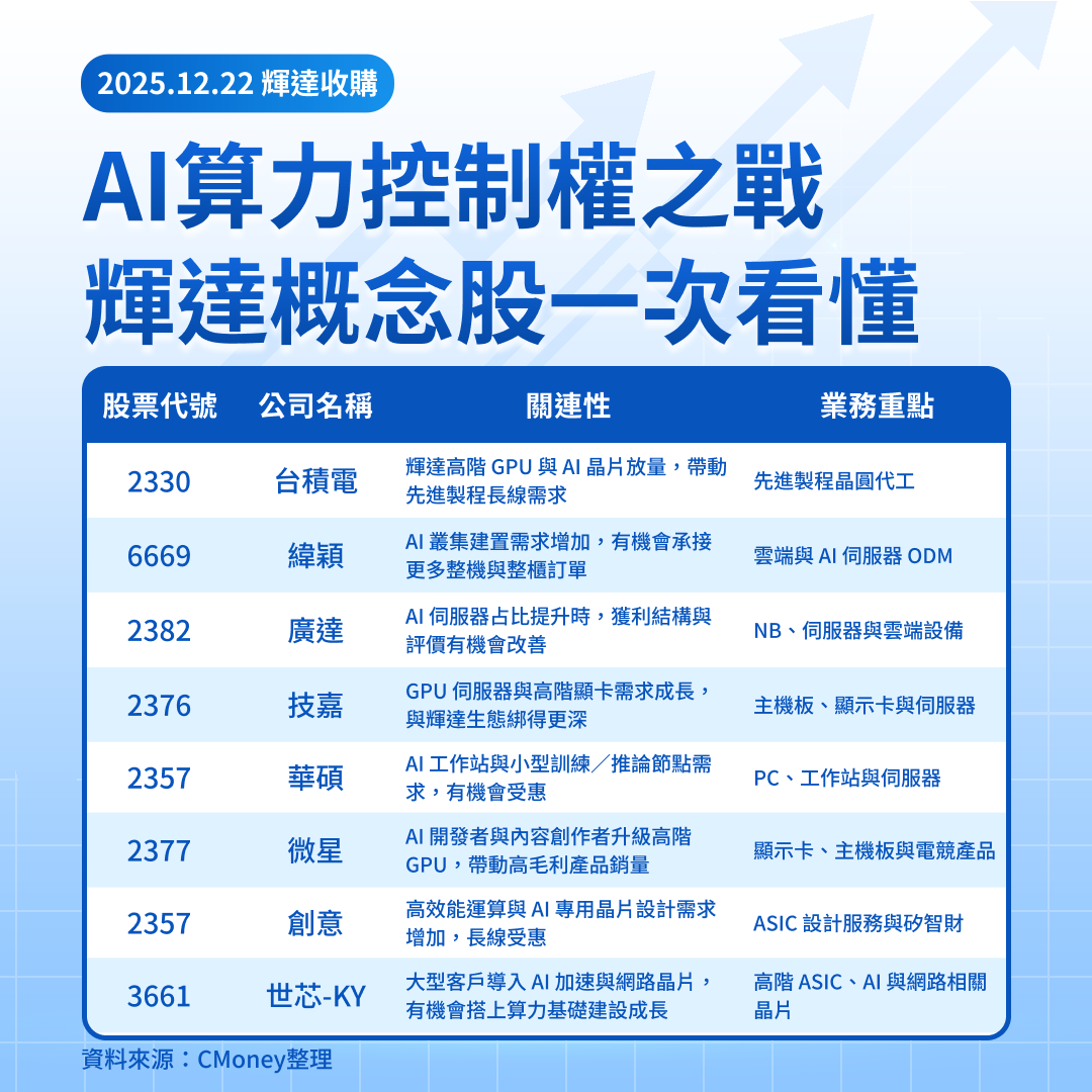 同一天,輝達也釋出新一批開源 AI 模型,股價當日約上漲 1.35%,市場把這次併購解讀為「硬體+軟體+開源生態」全面整合的關鍵一塊。