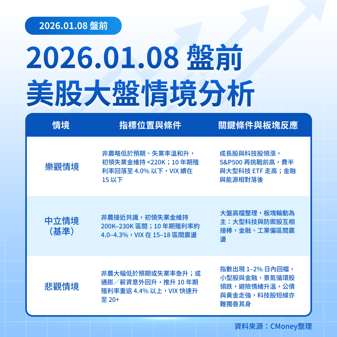 整體而言,今晚美股在就業與生產力數據後進入「等待非農+消化財報」階段,預期大盤以震盪整理、板塊輪動為主軸,建議在解讀數據時多留意利率與 VIX 的同步變化,以掌握風險/報酬的相對位置。