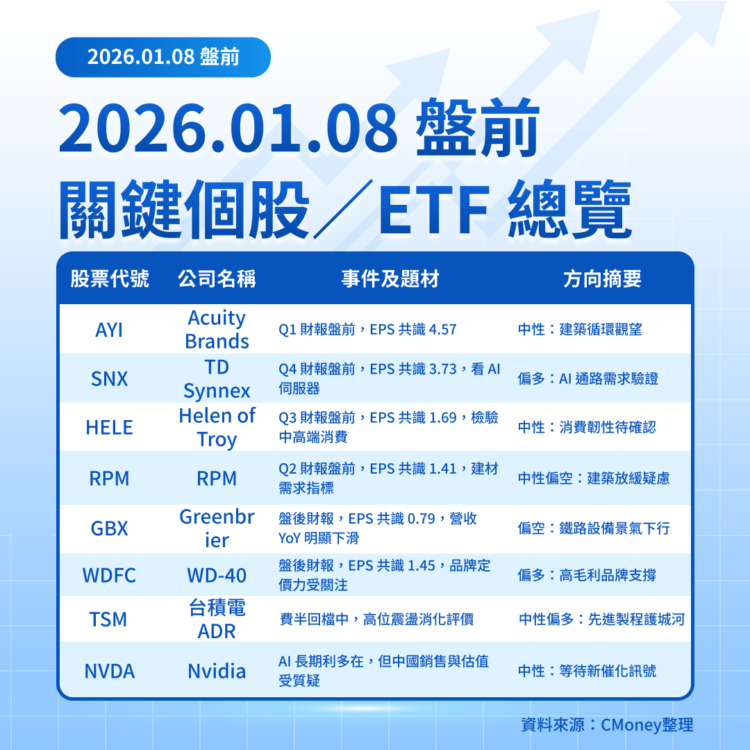 專業觀察: 今日財報多為「景氣敏感度中等」公司,利於市場修正對實體經濟的樂觀或悲觀極端,重點在於對 2026 年上半年需求指引,而非單季 EPS 驚喜本身。