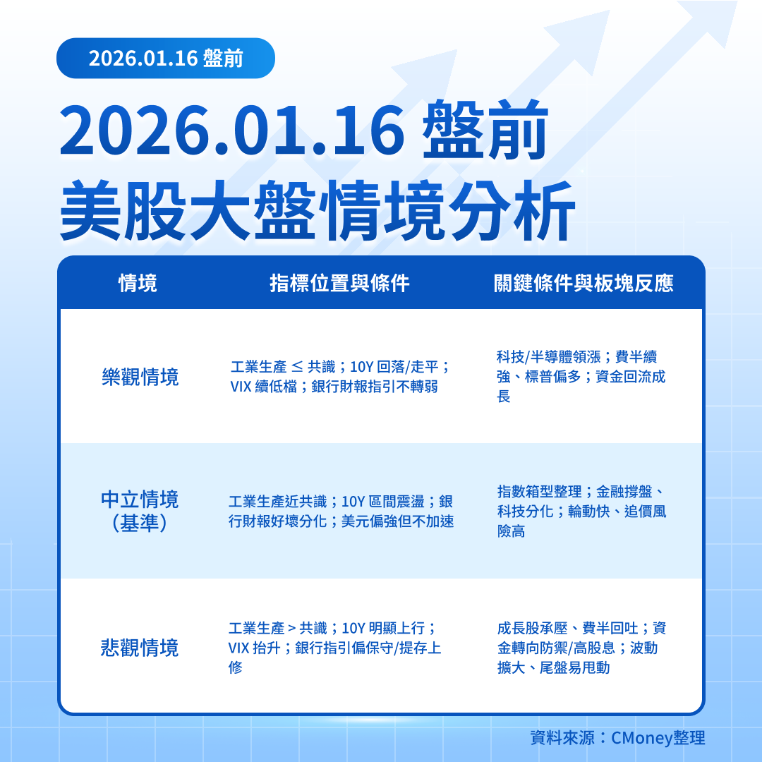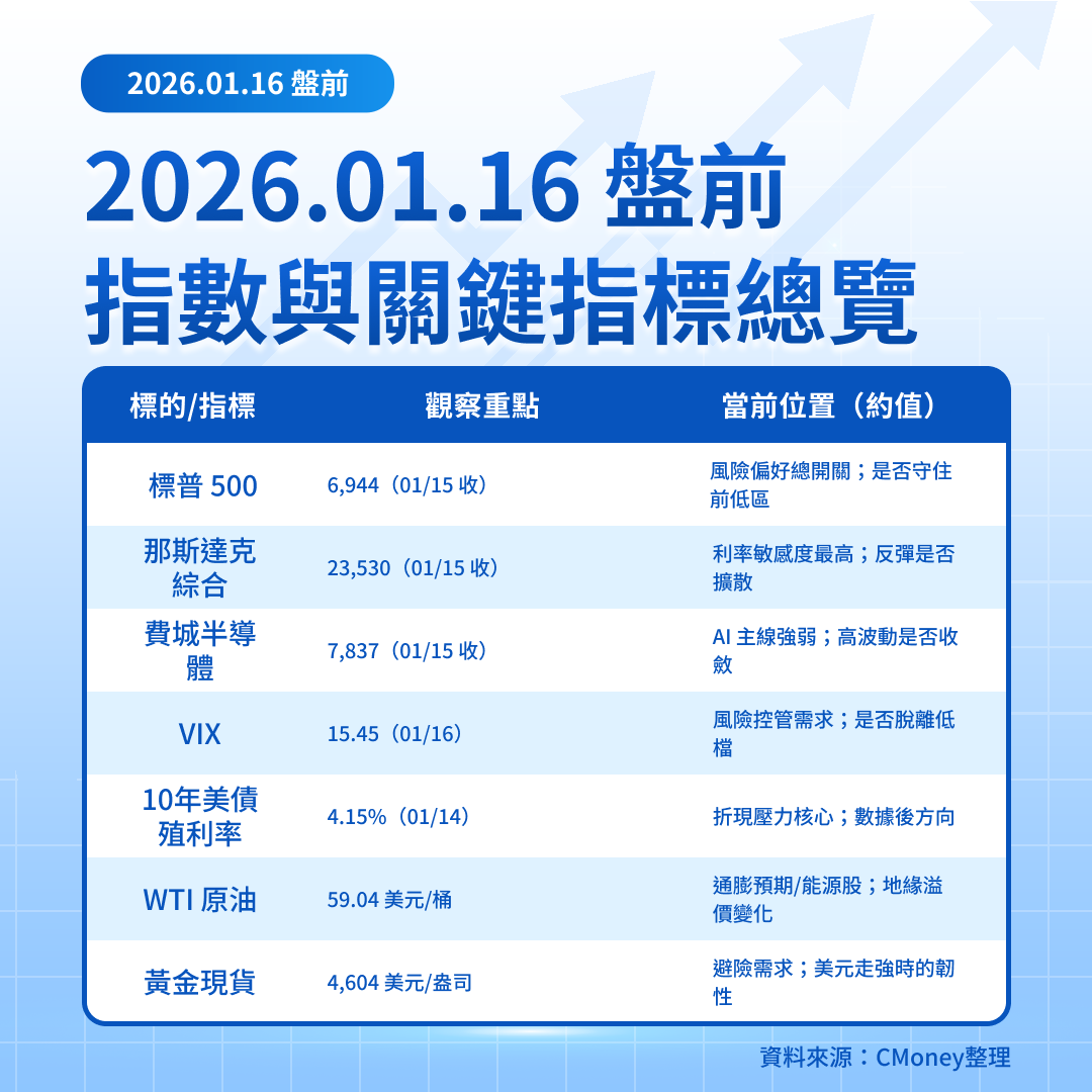1/16 美股盤前:數據與金融財報雙主軸,半導體主線延續
