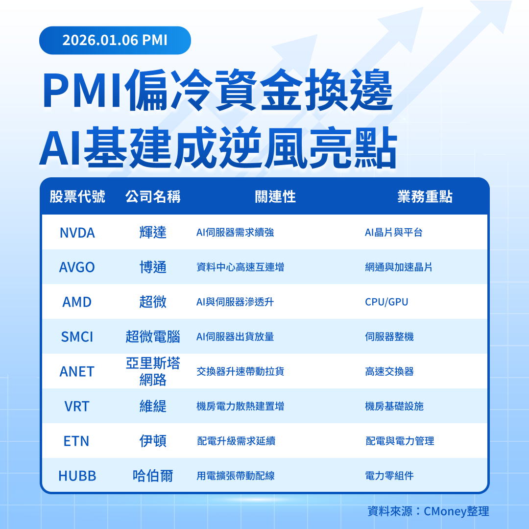 PMI偏冷資金換邊,AI基建成逆風亮點