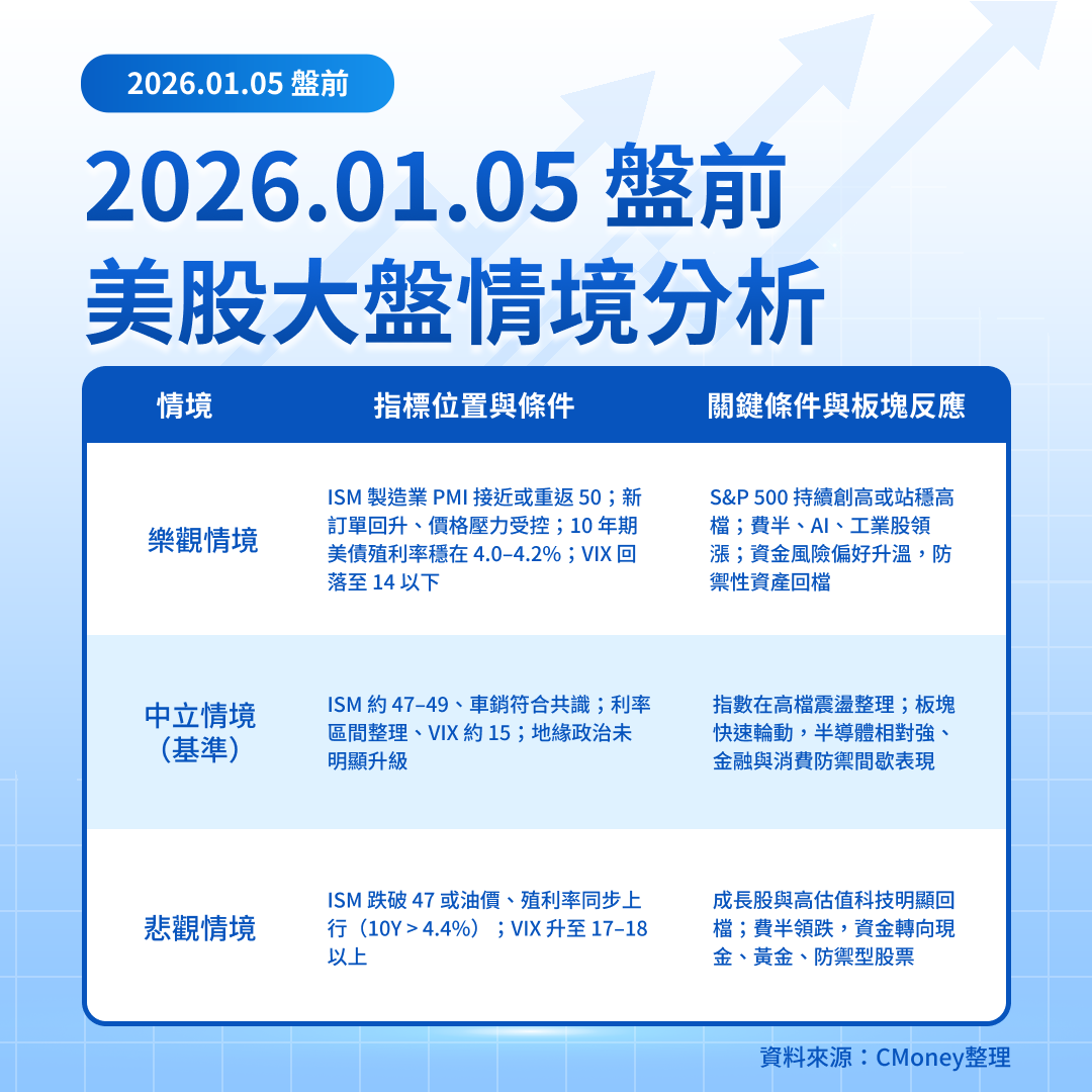 2026 年 1 月 5 日美股盤前:ISM 製造業數據登場、費半續強成觀察重點