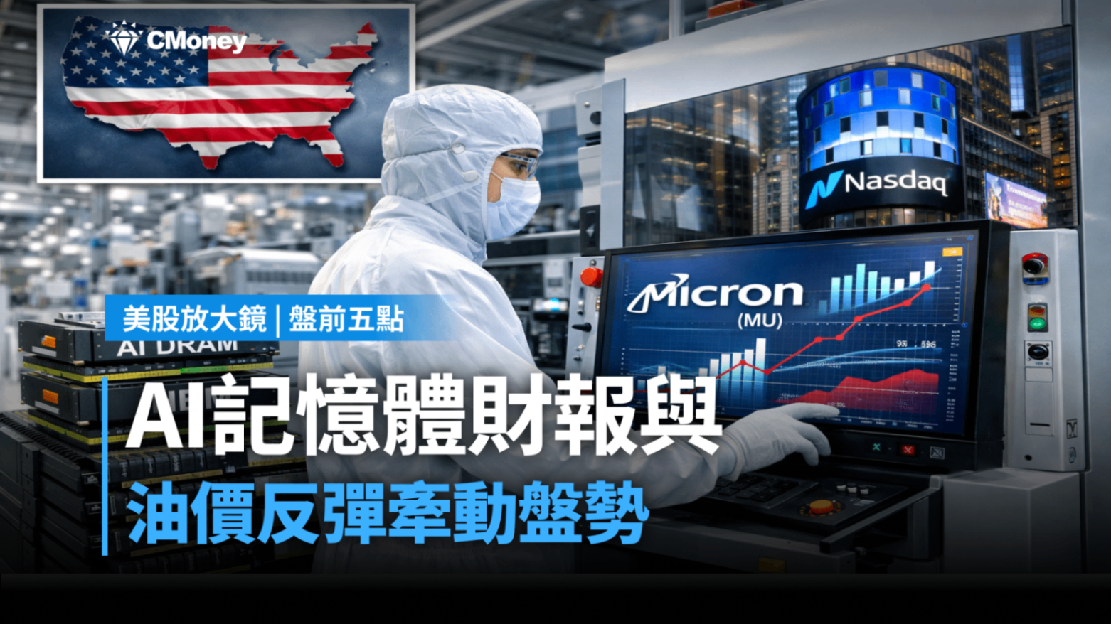 財報方面,盤前聚焦 General Mills(GIS)、Jabil(JBL)、Toro(TTC)、ABM(ABM)、Veru(VERU),盤後壓軸為 Micron(MU)AI 記憶體財報,牽動費半與 AI 交易情緒。