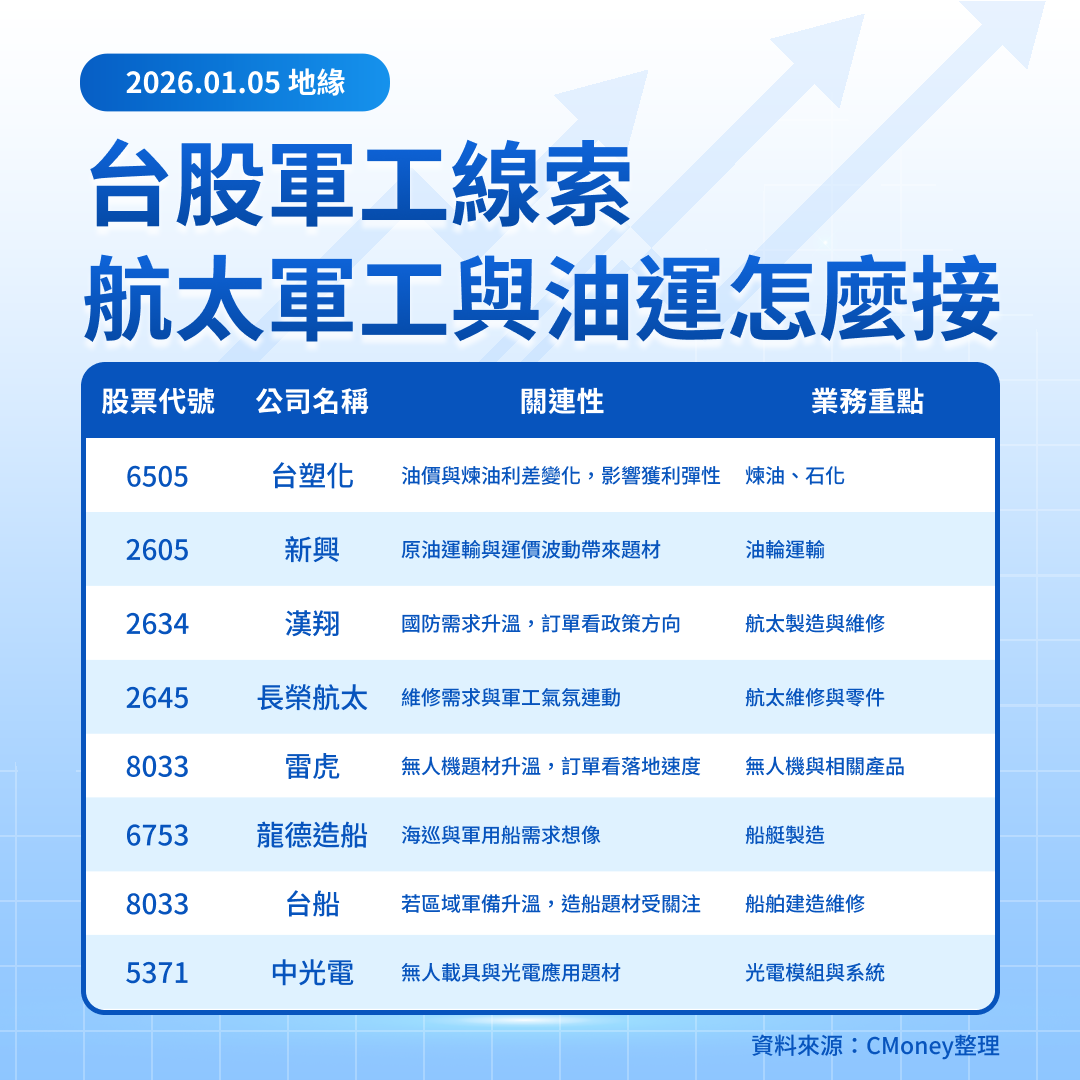 委內瑞拉這次事件帶來的不是單純「油價大漲」,而是兩條線一起被重算:能源端看「短期出口受限」與「長期供應放量想像」的拉扯,國防端看「安全支出預期」先反映在題材溢價、再慢慢等訂單與預算落地。接下來投資人最實用的策略,是把煉油、油服、國防一線股放進同一個自選清單,用價格與量能告訴你資金到底押哪一邊,而不是被新聞標題牽著走。