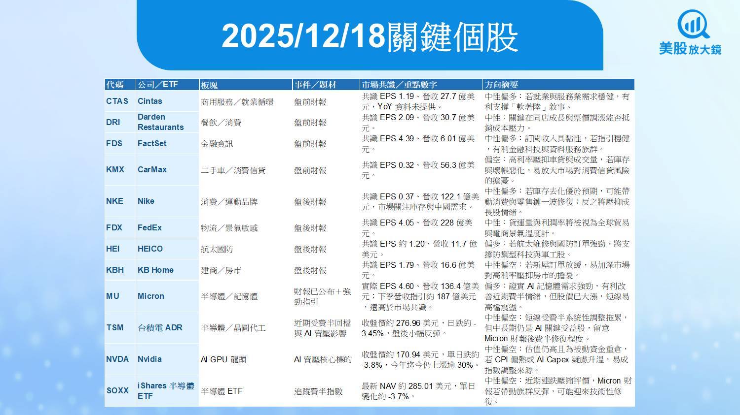 三、今日盤前/盤後財報雷達:Nike、FedEx 與就業循環股在聚光燈下