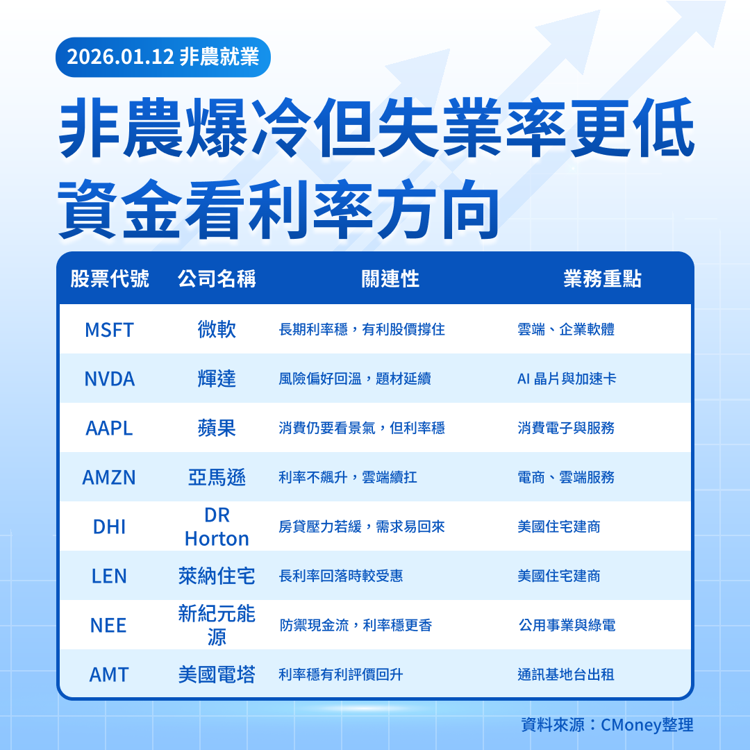這次非農像一個「雙面訊號」:新增就業很冷,提醒景氣正在降速;失業率更低、薪資仍增,又告訴你還不到全面翻車。後續行情更可能走「選對族群」而非「全市場同方向」,投資人要把焦點放在利率是否真的轉向,以及物價與就業會不會一起降溫。策略上,先用利率敏感族群當主軸追蹤,等趨勢站穩再加碼,會比追消息更踏實。