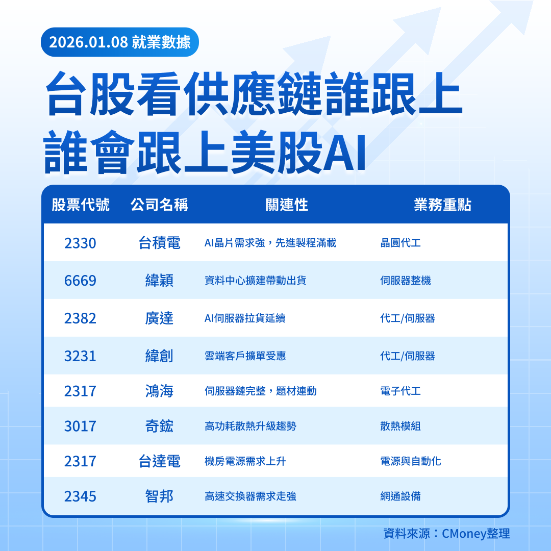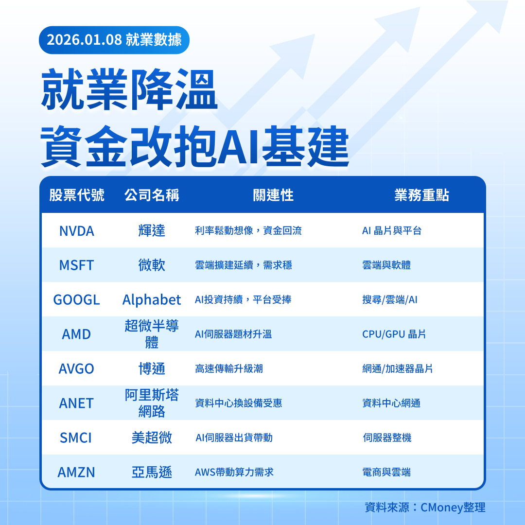 提醒:可盯官方非農與後續職缺數,若數字維持「慢但不崩」,AI 強勢更容易延續。