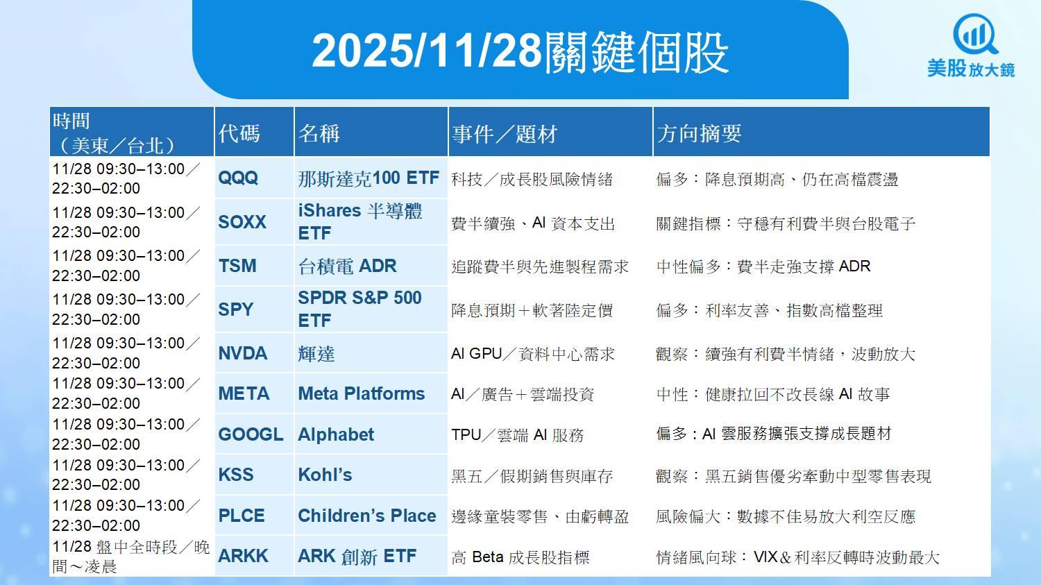 今晚(美東 11/28 黑色星期五,台北 11/29),市場焦點逐漸從總經轉向 消費力道驗證: