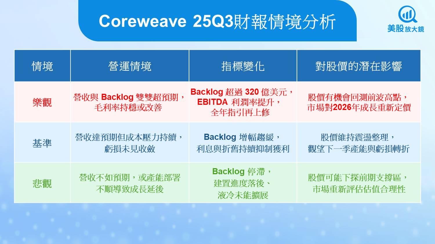 若訂單總量持續成長、營收超預期、虧損收斂,CoreWeave 有望走出股價震盪格局
