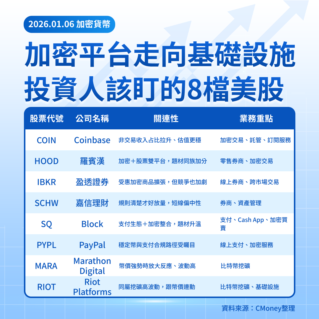 加密平台走向基礎設施:投資人該盯的8檔美股